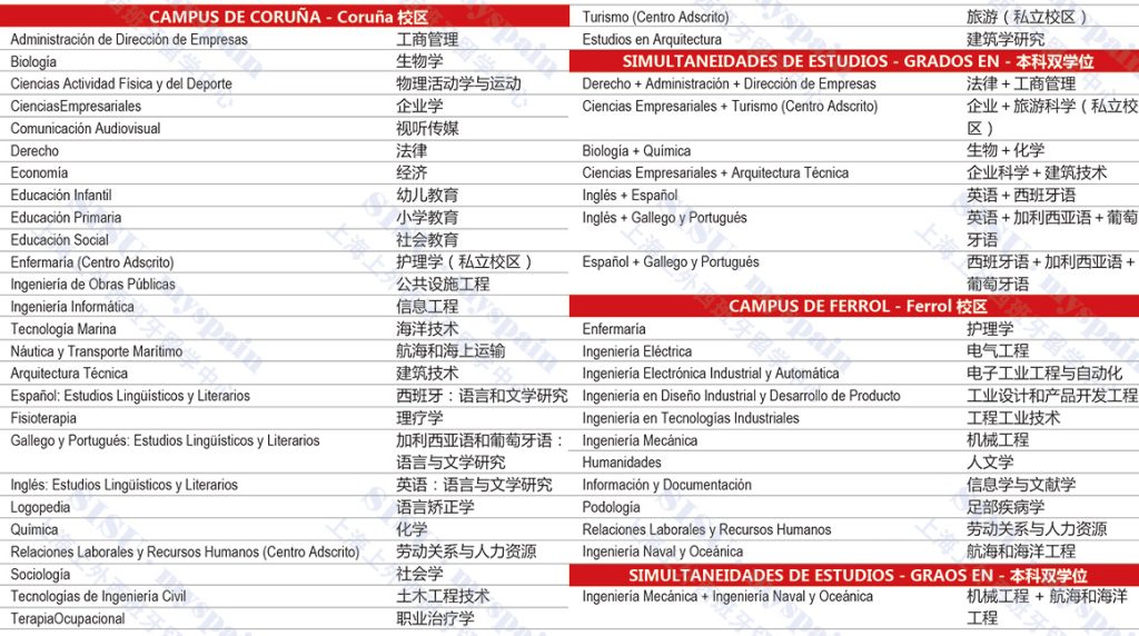| Facultade de Informática (信息工程学系) | 信息工程 | Campus de Elviña | |